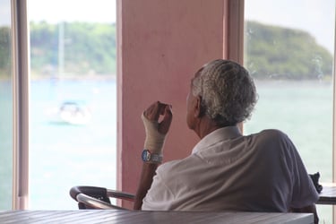 Regard planté dans le Sud... Son âge... Génération Bishop ! ai-je compris parce que j'avais un peu lu l'histoire de l'île : Maurice Bishop, premier ministre socialiste, fusillé par des opposants. Huit jours plus tard la Task Force américaine débarqua précisément ici, huit mille hommes, dans la rade de Greenville, le 25 octobre.